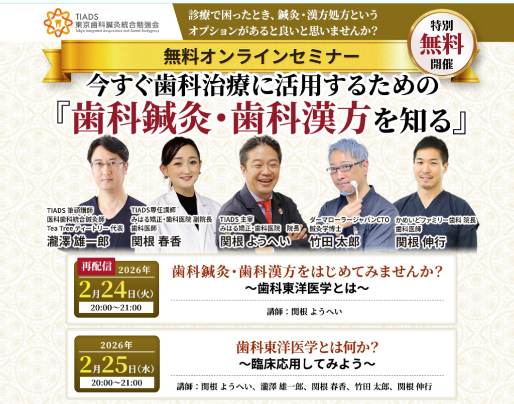 ぜひ歯科鍼灸・漢方という新しい世界に挑戦し、先生の治療の幅を広げてください。